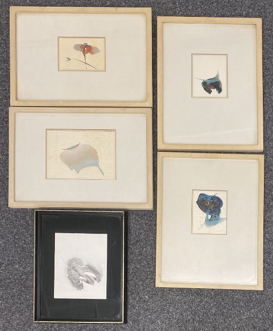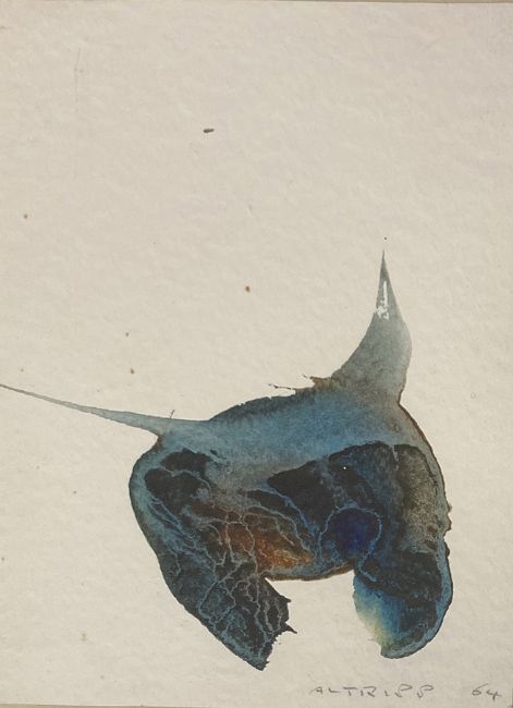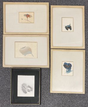Alo ALTRIPP (1906-1991), 5 Kompositionen, Aquarelle, davon vier farbig und eine Darstellung schwarz weiß, alle signiert und datiert zwischen 1961 und 1973, rücks. bez. A395/61 IX Zyklus "Orselina" 61, A488/64 XI, A760/61 XII, A73/73 II, einmal mit Widmung: Dr. Ulrich Gertz in Dankbarkeit Ende 1964 Altripp, Blattgröße zwischen 12 x 16 und 18 x 24,5 cm / Alo ALTRIPP (1906-1991), 5 compositions, watercolours, four of them in colour and one in black and white, all signed and dated between 1961 and 1973, inscribed on the reverse A395/61 IX cycle ‘Orselina’ 61, A488/64 XI, A760/61 XII, A73/73 II, once with dedication: Dr. Ulrich Gertz in Dankbarkeit Ende 1964 Altripp, sheet size between 12 x 16 and 18 x 24.5 cm